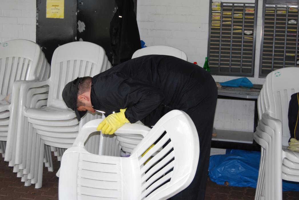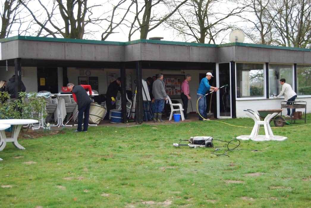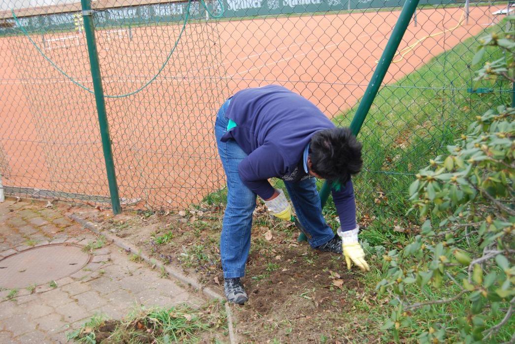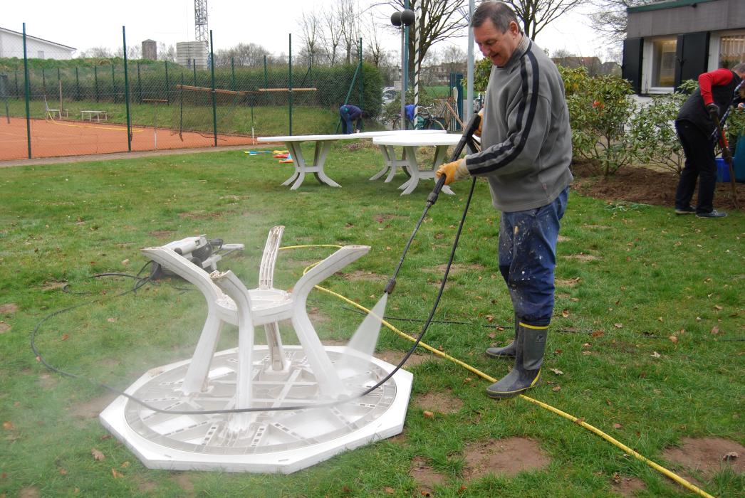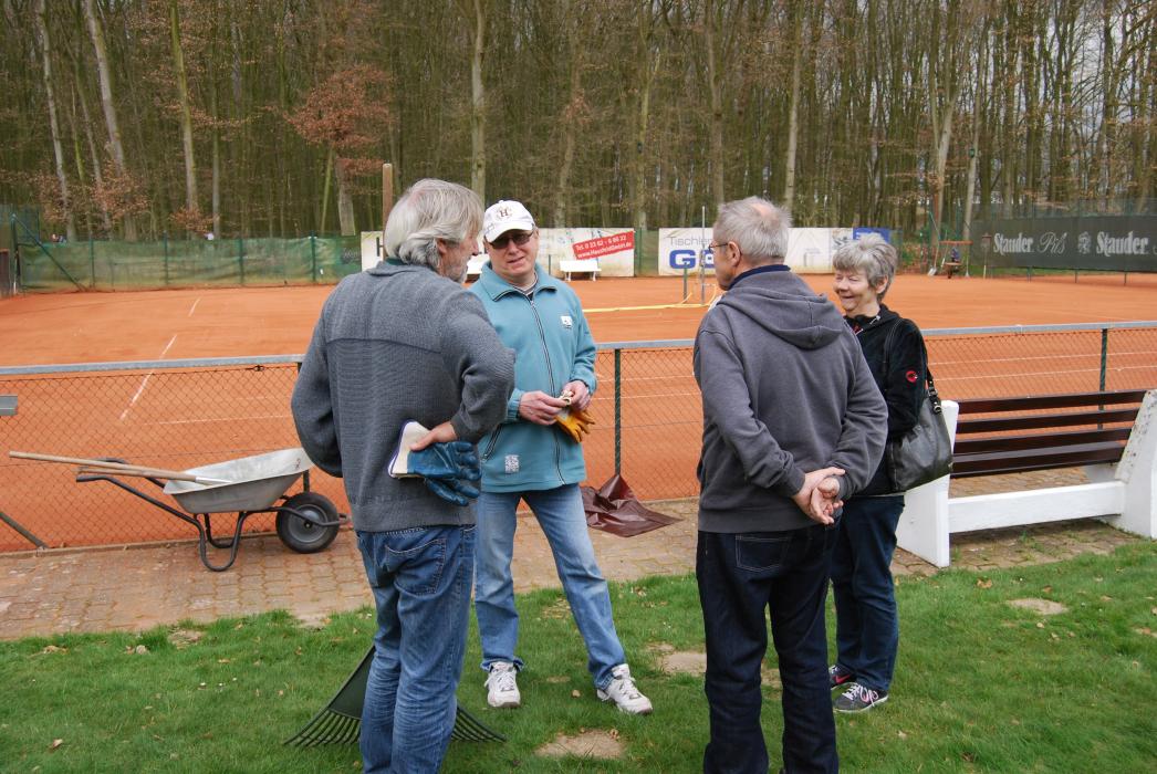 Zwischen 9:00h und 12:00h ging es dem Schmutz, dem Unkraut und dem Restlaub an den Kragen, so dass nun nur noch die Netze fehlen, um der gelben Filzkugel nachjagen zu können.