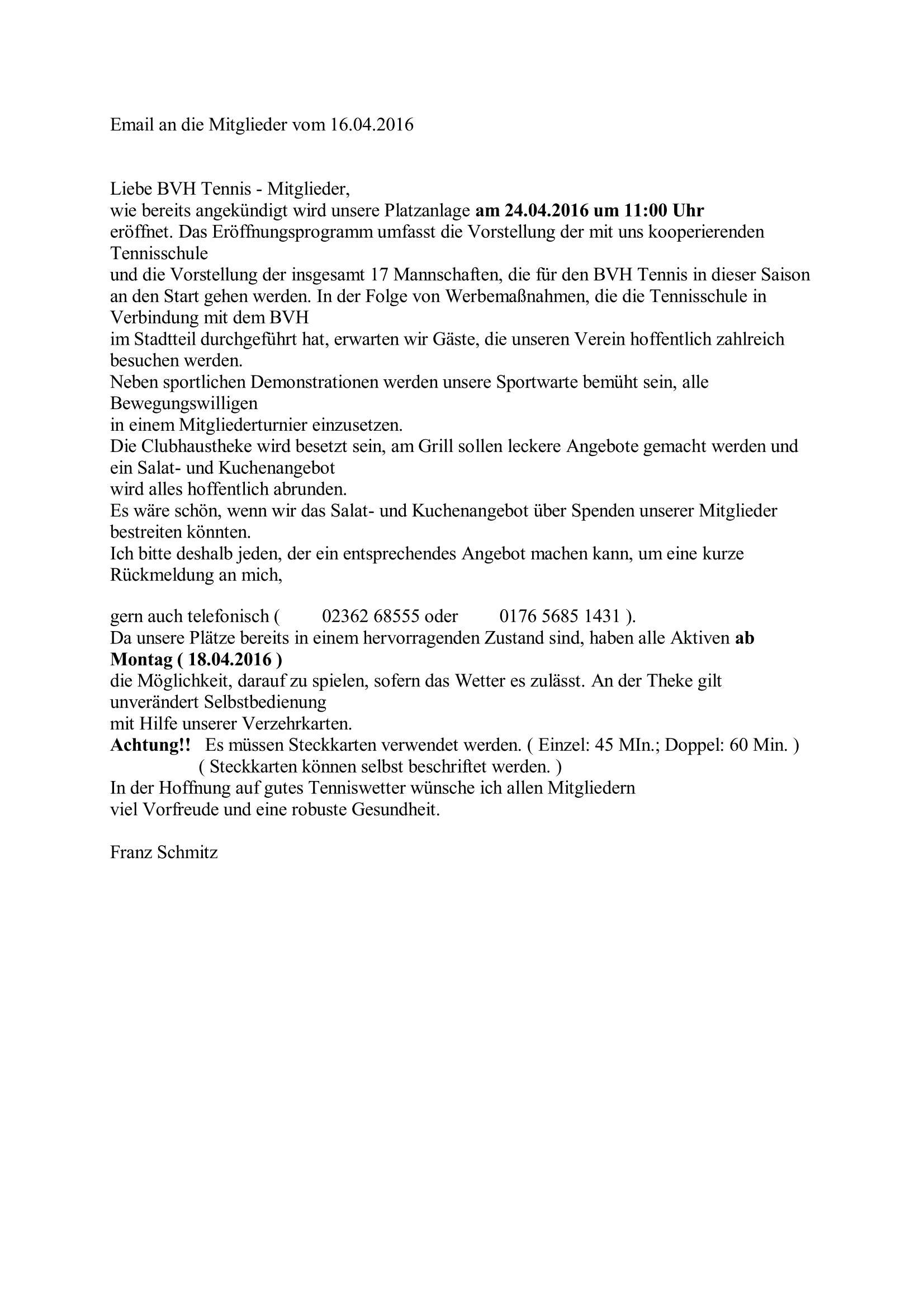 E-Mail an die Mitglieder vom 16.04.2016 Von Franz Schmitz|2016-10-14T12:31:12+02:00April 16th, 2016|Kommentare deaktiviert für E-Mail an die Mitglieder vom 16.04.2016