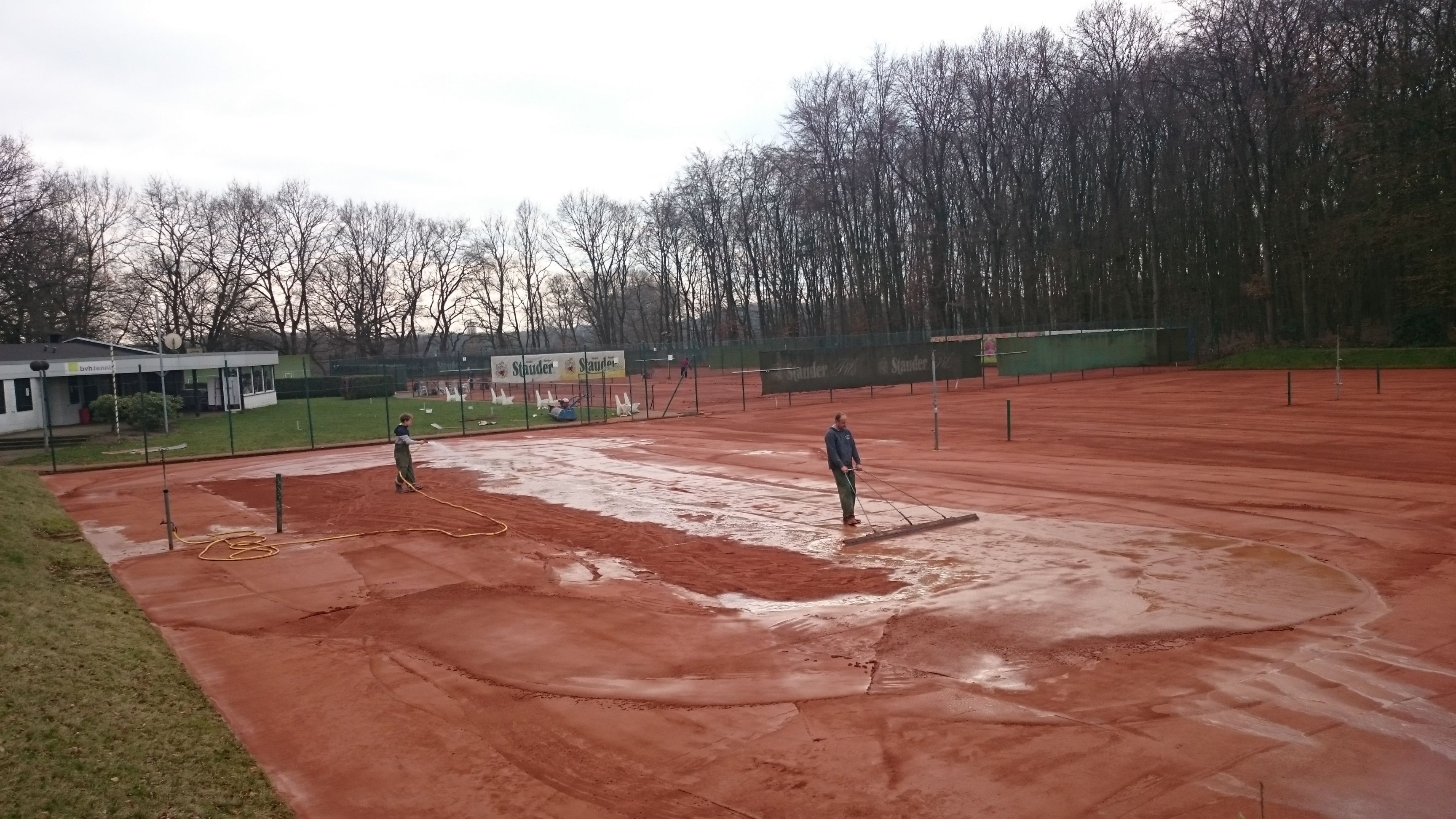 Dabei werden unter anderem einige Tonnen an neuer roter Asche auf den Plätzen eingestreut, eingeschlämmt und planiert. Dank der frühen Erledigung dieser Arbeiten dürften unsere Spielflächen genug Zeit zum „Liegen“ haben und sollten pünktlich zu Saisonbeginn wieder in einem sehr guten Zustand sein, den wir alle natürlich über die nächsten Monate weiter pflegen sollten.