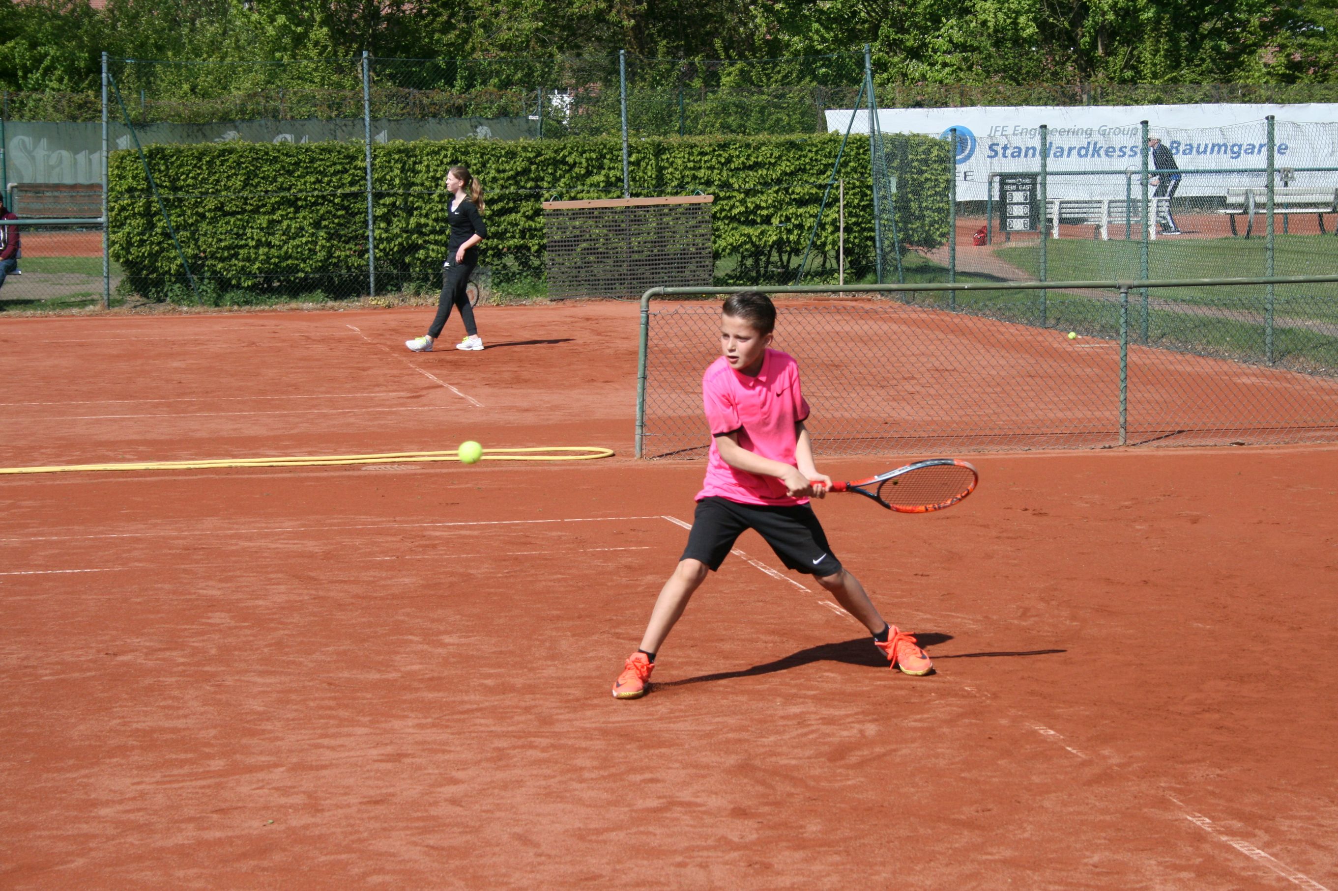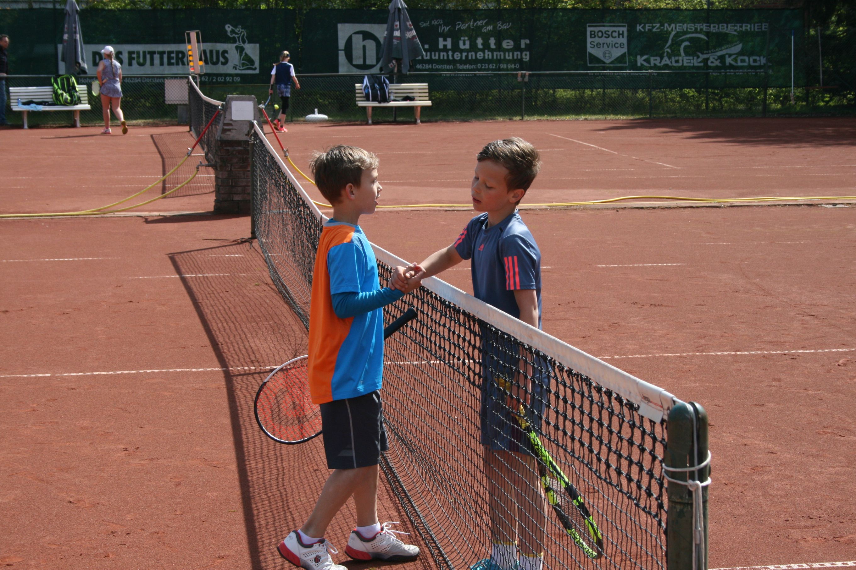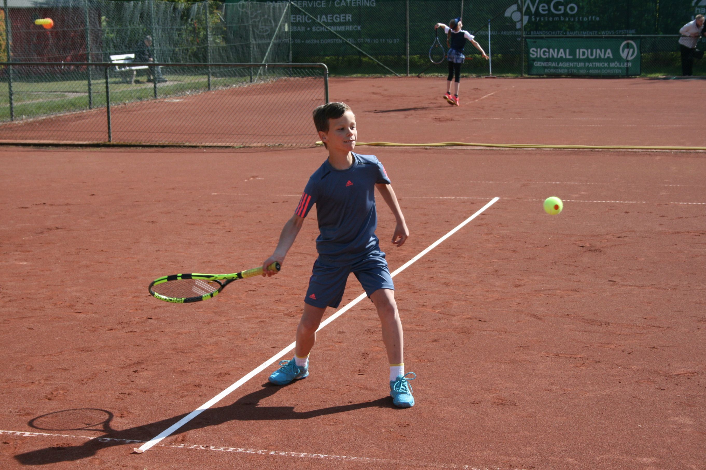 Bei den Junioren U9 setzte sich Noah Wesselmann, der in bestechender Form auf dem Weg zum Titel bereits die Vereinskameraden Luan Bückemeier und Nico Motzny klar bezwungen hatte, auch in seinem dritten BVH-Duell des Turniers deutlich mit 6:2 6:2 gegen Constantin Kruse durch. Obwohl Constantin zunächst durch das Tempo von Noah etwas erschöpft schien, spielten die beiden kurz nach dem Match schon wieder auf dem Kleinfeldplatz des DTC weiter, um sich die Zeit bis zur Siegerehrung zu vertreiben.