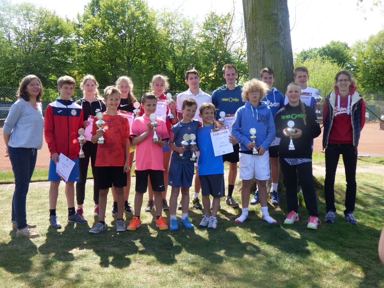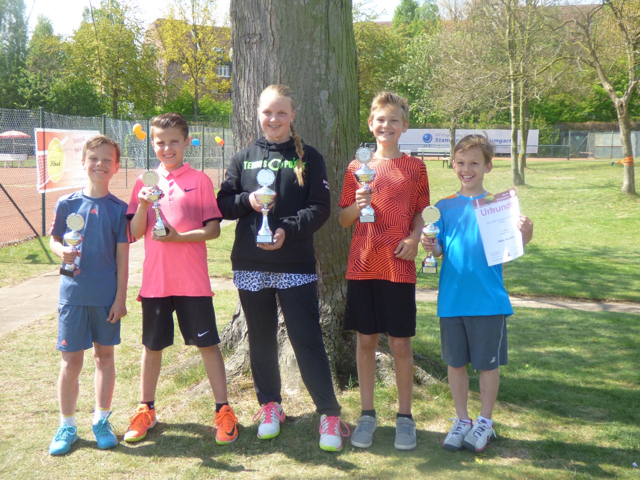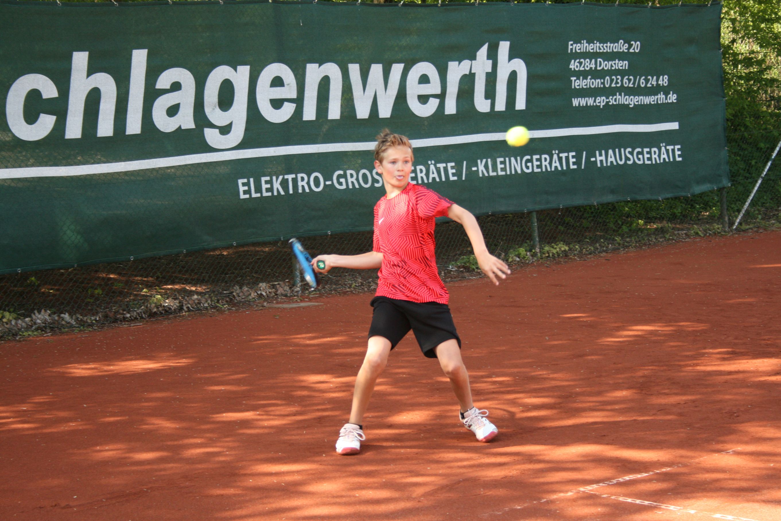 Bei den Junioren U9 setzte sich Noah Wesselmann, der in bestechender Form auf dem Weg zum Titel bereits die Vereinskameraden Luan Bückemeier und Nico Motzny klar bezwungen hatte, auch in seinem dritten BVH-Duell des Turniers deutlich mit 6:2 6:2 gegen Constantin Kruse durch. Obwohl Constantin zunächst durch das Tempo von Noah etwas erschöpft schien, spielten die beiden kurz nach dem Match schon wieder auf dem Kleinfeldplatz des DTC weiter, um sich die Zeit bis zur Siegerehrung zu vertreiben.