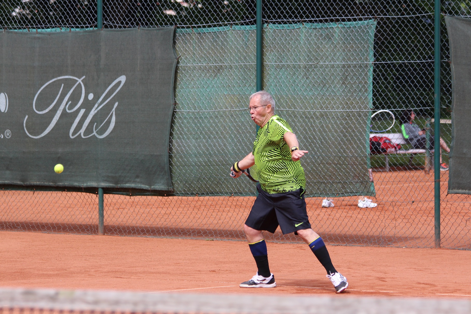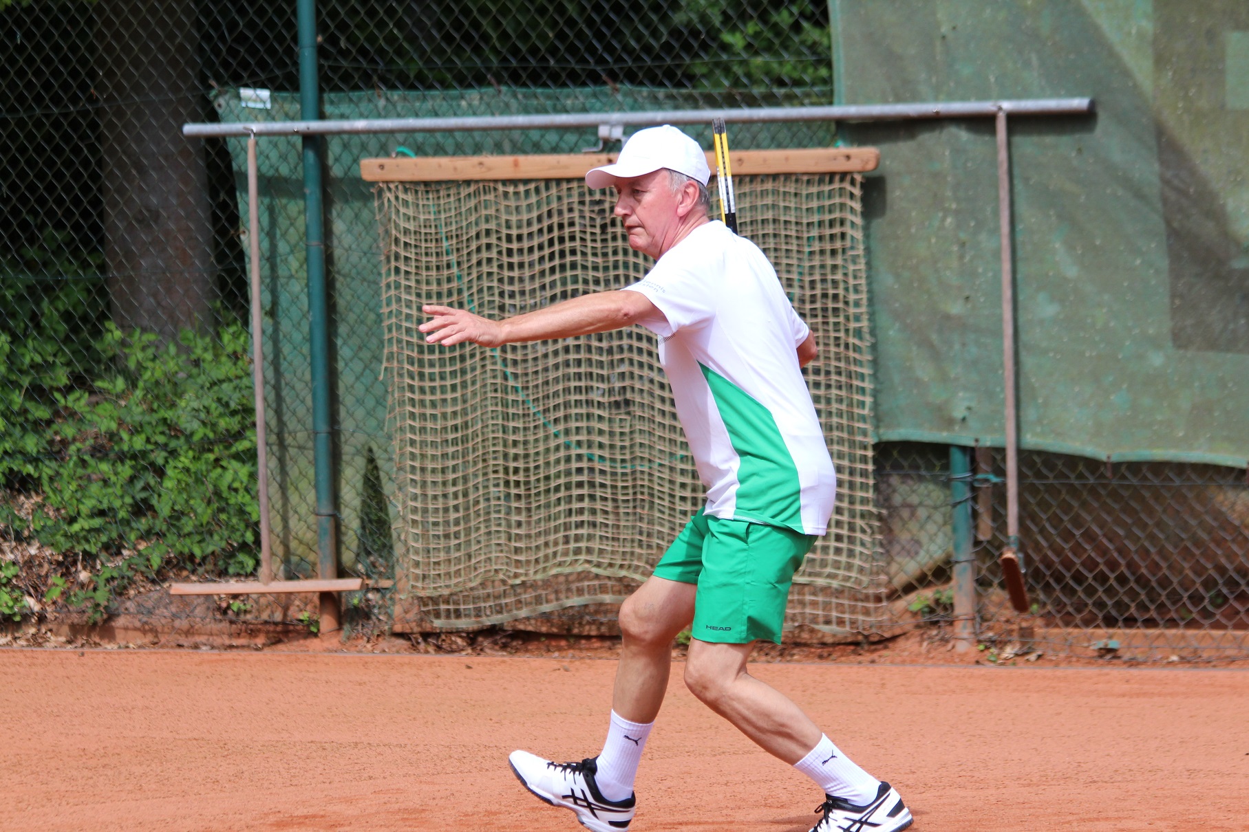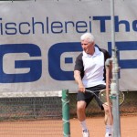 Im Anschluss waren der doch einsatzbereite Fredi im Spitzeneinzel und Ralf Gerlach an Position sechs gefordert. Es lief wie erwartet: Ralf gewann sogar „zu Null“ und ließ dem Gegner dabei mit seinem variablen Spiel überhaupt keine Chance. Fredi kämpfte wacker, aber zu mehr als einem 2:6 1:6 reichte es gegen einen Gegner, der auch schon deutlich höher gespielt hatte, leider nicht.