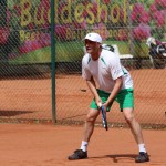 Um für die Doppel eine gute Ausgangsposition zu haben, mussten Christoph Vennemann (5) und Sascha Dresen (4) punkten. Christoph war an diesem Tag sehr nervös und sein Spiel zu Beginn geprägt von Höhen und Tiefen. Nachdem er den ersten Satz mit 6:4 nach Hause gebracht hatte, wurde er etwas lockerer und sicherte sich den zweiten Durchgang 6:2. Sascha dagegen begann stark und gewann den ersten Durchgang gegen den neben der Nummer Eins wohl stärksten Spieler der Gäste 6:2. Gegen Ende des zweiten Satzes war es mit der Lockerheit aber vorbei und nach einer 5:4-Führung musste sich Sascha in den Tiebreak retten, in dem aber sein Gegner das bessere Ende für sich hatte. Also musste der Matchtiebreak die Entscheidung bringen. Es ging hin und her und die Spannung war kaum auszuhalten. Beim Stande von 9:7 für Sascha dann der Ball des Tages: Einen nicht verwandelten Überkopfball des Gegners konnte Sascha gerade noch so als verunglückten Lob zurückspielen. Der Ball segelte langsam in Richtung des Netzes und auch am Spielfeldrand dachte man, er wäre deutlich zu kurz – doch er fiel schließlich auf die Netzkante und rutschte von dort aus für den überraschten Gegner unreturnierbar auf dessen Seite ab. Damit war das Match gewonnen, es hieß 4:2 für den BVH und nur noch ein Matchpunkt aus den Doppeln musste her.