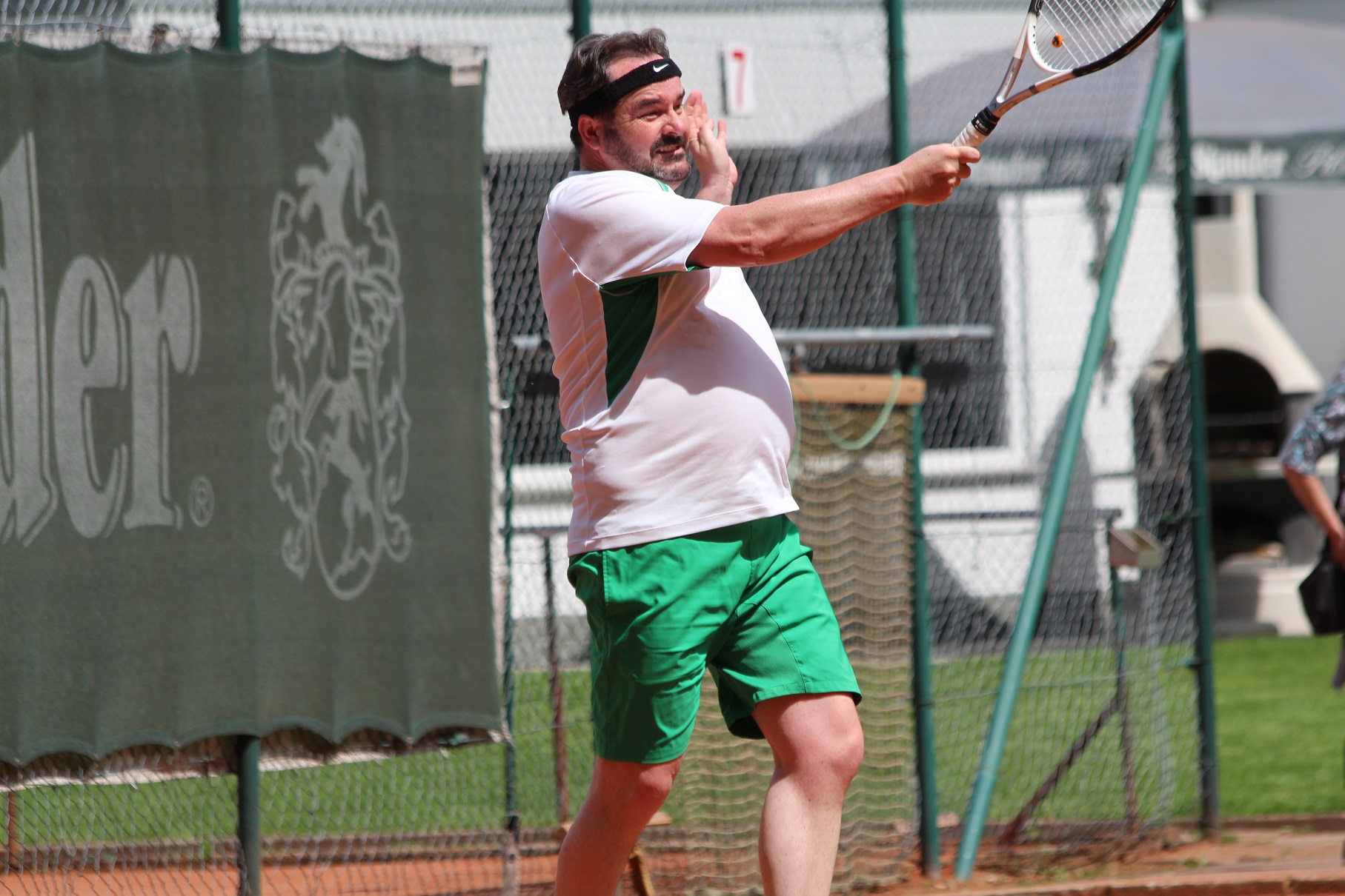 Bis zuletzt gab es noch Unwägbarkeiten in der Aufstellung unserer Mannschaft. Fredi Scholz (1) hatte sich unter der Woche eine Zerrung zugezogen und Kapitän Marco Wallisch musste später am Tage noch als Wahlhelfer bei der Landtagswahl fungieren, konnte aber, da wegen der zwei anderen Partien auf unserer Anlage nur auf zwei Plätzen gespielt werden konnte und sich die Gegner darauf einließen, neben Jürgen Beule (2) an Position drei starten. Für Marco schien es auch zunächst recht schnell zu gehen, aber nach einer 5:0-Führung ließ er etwas nach und den Gegner noch einmal auf zwei Spiele heran, ehe er den Durchgang 6:3 gewann. Ähnlich verlief der zweite Satz, den Marco schließlich aber noch etwas deutlicher mit 6:2 für sich entscheiden konnte. Nicht so gut lief es derweil bei Jürgen, der mit seiner berüchtigten Slice-Rückhand seinem sehr sicheren Gegner leider nur über weite Strecken des ersten Satzes Paroli bieten konnte. Im zweiten Durchgang wollte ihm nicht mehr viel gelingen und auch die Ratschläge von außen halfen nicht. So hieß es am Ende 5:7 und 0:6.