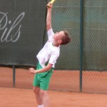 Im Spitzenspiel ging Noah extrem offensiv ans Werk und versuchte kontinuierlich, das Netz zu attackieren. Geburtstagskind Luan versuchte Noah mit wechselnden langen und kurzen Bällen aus dem Rhythmus zu bringen, konnte allerdings den Angriffsdrang seines Gegners nur zeitweise bremsen. Am Ende ging Noah mit einem 6:3 und 6:4 als Sieger vom Feld. Nico und Benedikt sollten das zweite Marathon-Match des Tages spielen. Beide Kontrahenten kämpften um jeden Ball und es gelang keinem der beiden, sich abzusetzen. Folgerichtig ging es im ersten Satz ins Tie-Break, in dem sich Benedikt deutlich durchsetzen konnte. Im zweiten Satz lief es weiter ausgeglichen, doch Nicos Taktik, Benedikt kontinuierlich in Bewegung zu halten, schien aufzugehen. So zwang Nico seinen Gegner zu schwierigen Schlägen und sicherte sich den zweiten Satz mit 6:4. Im Match-Tie-Break ging Nico schnell deutlich in Führung. Trotz einer kurzen Aufholjagd von Benedikt hieß es am Ende 10:5 für Nico, und man ging mit einem 2:2 in die Doppel.