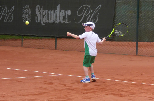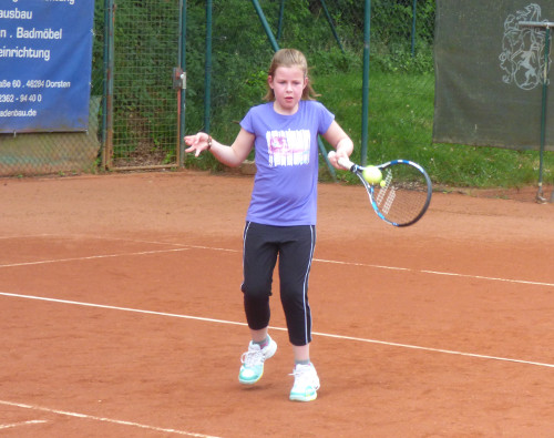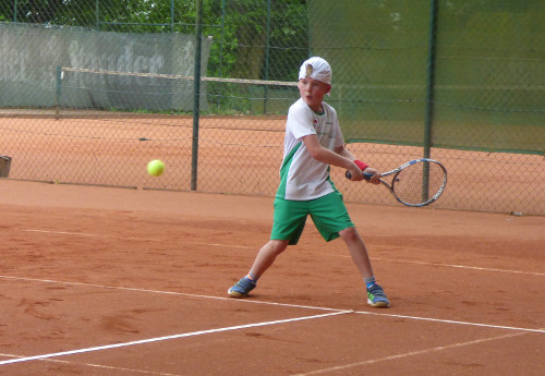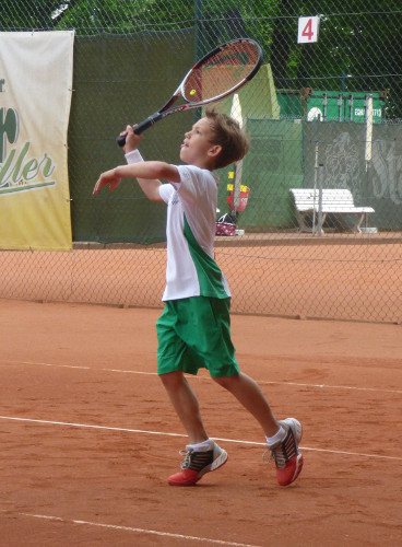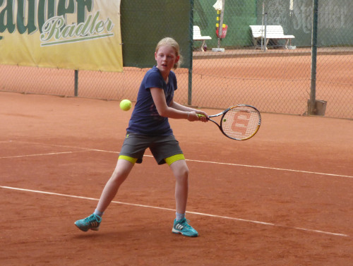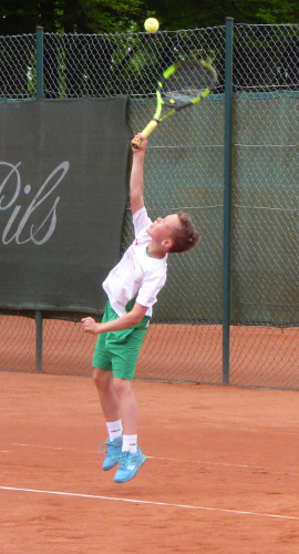 Malin und Klara lieferten sich in langen und ausgeglichenen Ballwechseln ein spannendes Duell. Gegen eine nahezu fehlerfrei spielende Klara kam Malin zwar im Spielverlauf immer besser ins Spiel, musste sich am Ende aber 2:6 und 4:6 geschlagen geben. In praller Sonne und hochsommerlichem Klima lieferten Jasper und Constantin sich auf dem Platz nebenan ein intensives Match, in dem beide Spieler mit vielen sehenswerten Aktionen versuchten, das Gegenüber mit variantenreichem Spiel auszuspielen. Constantin sicherte sich den ersten Satz dabei 6:4. Im zweiten Satz blieb es weiterhin sehr eng und die Zuschauer waren schon auf ein Match-Tie-Break eingestellt, als Jasper sich beim Stand von 5:4 zwei Satzbälle erspielte. Constantin drehte aber trotz des kräftezehrenden, beinahe schon 2 Stunden laufenden Spieles noch einmal richtig auf und wehrte nicht nur die Satzbälle ab, sondern sicherte sich die nächsten drei Spiele zum Endstand von 6:4 und 7:5.