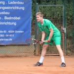Marius Wilker legte im Spitzeneinzel los wie die Feuerwehr und ließ dem Gegner im ersten Satz beim 6:0 überhaupt keine Chance. Trotz etwas mehr Gegenwehr konnte er auch den zweiten Durchgang relativ locker mit 6:3 nach Hause schaukeln. Kevin Beule (5) musste sich seine Punkte gegen einen sehr sicheren und clever spielenden Gegner hart erkämpfen. Bis zum 5:4 war die Partie sehr ausgeglichen, dann gelang Kevin das entscheidende Break. Anschließend schienen die Kräfte beim Gegner ein wenig zu schwinden und der Rest war mit 6:1 nur noch Formsache. Fabian Pappert (3) konnte den ersten Durchgang mit 6:3 auf der Habenseite verbuchen. Nach deutlicher Führung im zweiten Satz musste er aber noch einmal zittern und es kam zum Tiebreak. Hier sah es bei einem 3:6-Rückstand nach einem dritten Satz aus, aber Fabi schaffte noch die Wende und gewann den Tiebreak mit 8:6. Damit war auch der Gesamtsieg bereits perfekt.