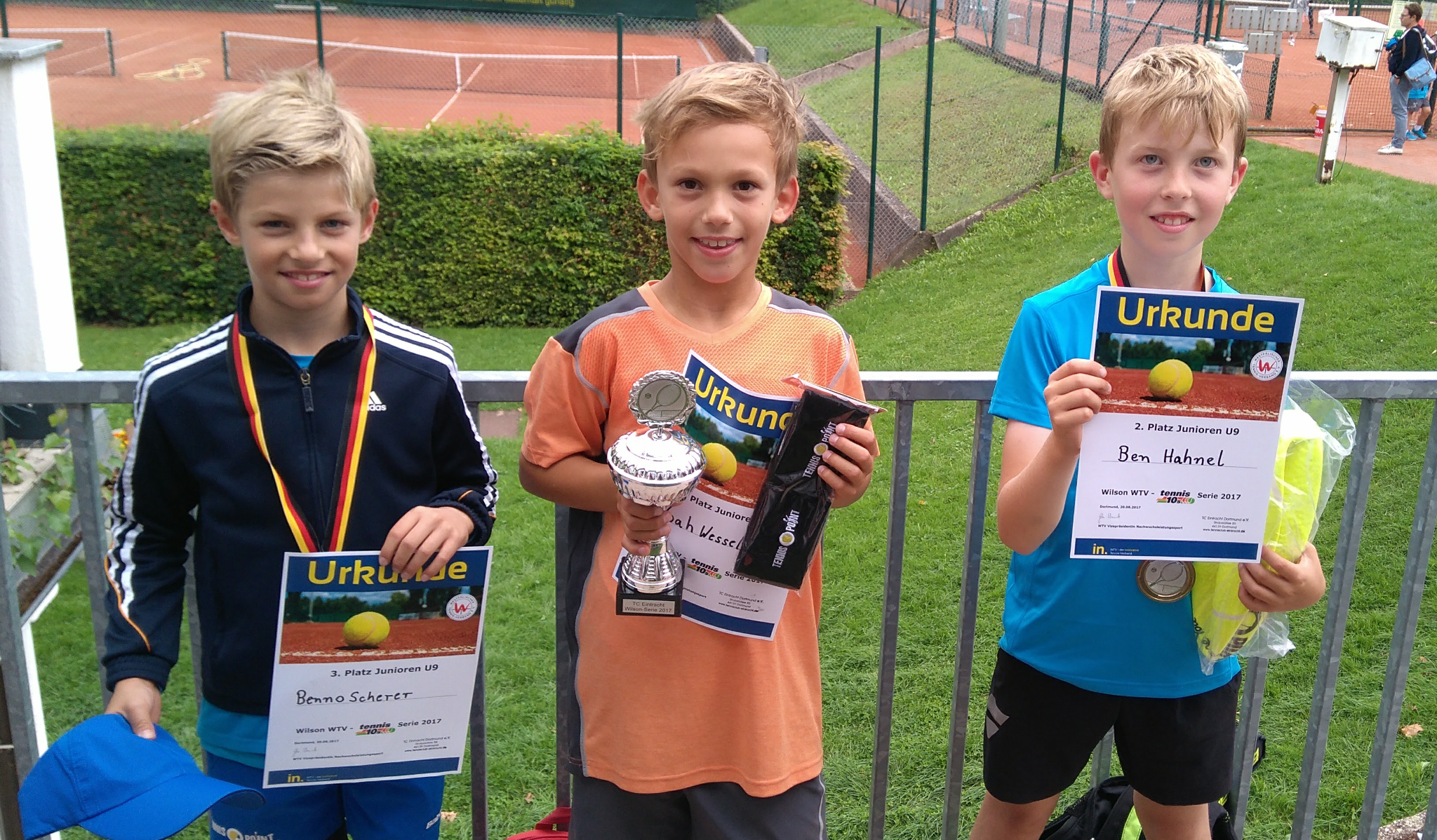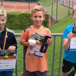 In der mit 9 Kindern nur dünn besetzten U9-Konkurrenz startete Noah als Favorit und wurde dieser Rolle gerecht, als er am Samstag mit zwei sehr klaren Siegen in der Qualifikation in die Finalgruppe einzog. Auch am Sonntag zeigte er sowohl gegen seinen guten Freund Benno Scherer vom THC Münster als auch gegen Benjamin Hahnel von TC Eintracht Dortmund gutes Tennis und dominierte seine Spiele vom Aufschlag weg temporeich, druckvoll und mit zahlreichen Angriffen ans Netz. In allen Spielen des Turniers gab er keinen Satz ab und konnte in seinem dritten Tennis 10s-Vereinsturnier in diesem Jahr verdient zum dritten Mal den Siegerpokal mit nach Hause nehmen.