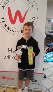 Zur Siegerehrung überreichte WTV Vizepräsidentin Gerti Straub Noah und Jonathan zusätzlich zu einem Pokal noch eine Dose des neuen WTV Tour-Balls als Geburtstagsgeschenk. Mit seinen guten Leistungen konnte Noah sich trotz der zwei Niederlagen zufrieden auf den Heimweg machen – hinter dem Gesamtsieger Oliver Majdandzic aus Oeynhausen war er der bestplazierte Spieler aus dem jüngeren 2008er-Jahrgang bei diesem Turnier!