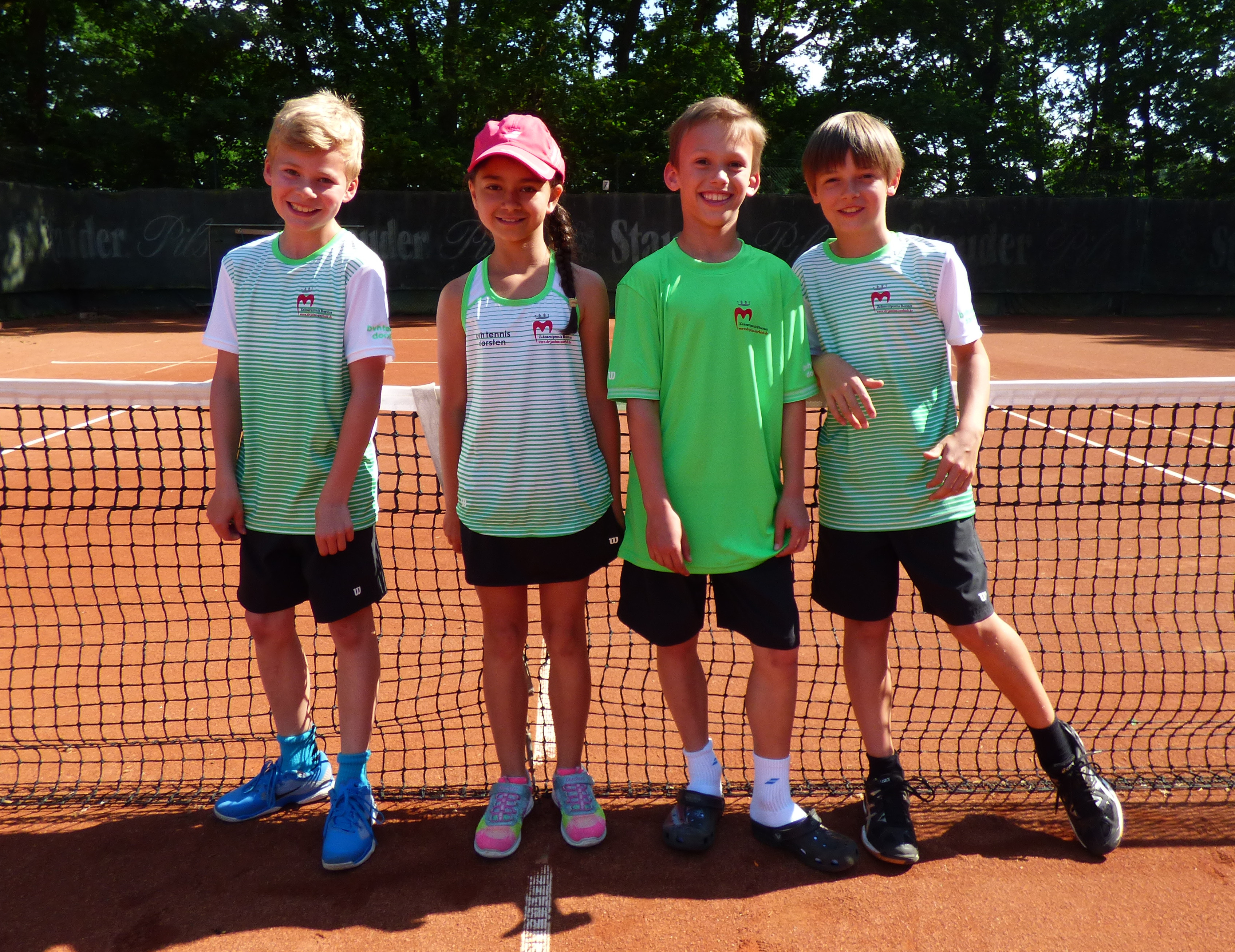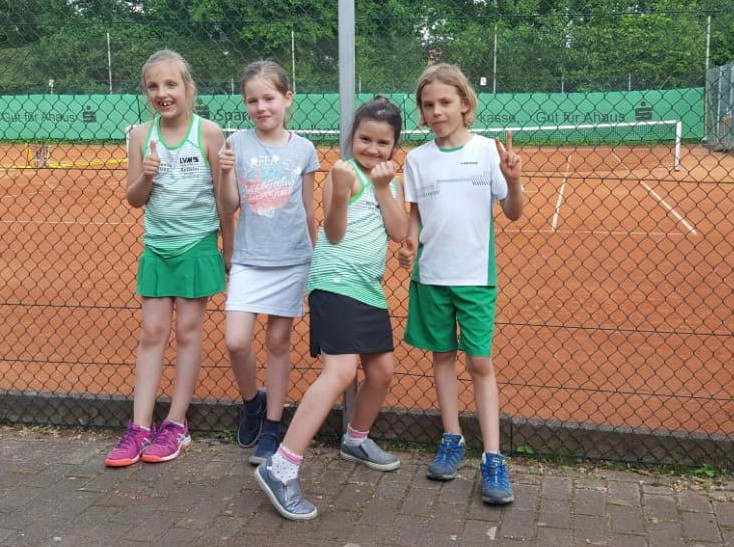 Ihren ersten Einsatz auf dem Midcourt hatten Emil Driesner (1), Josi Dietrich (2), Merle Keferstein (3) und Hannah Buchholz (4) zeitgleich auf der Anlage des VfL Ahaus.