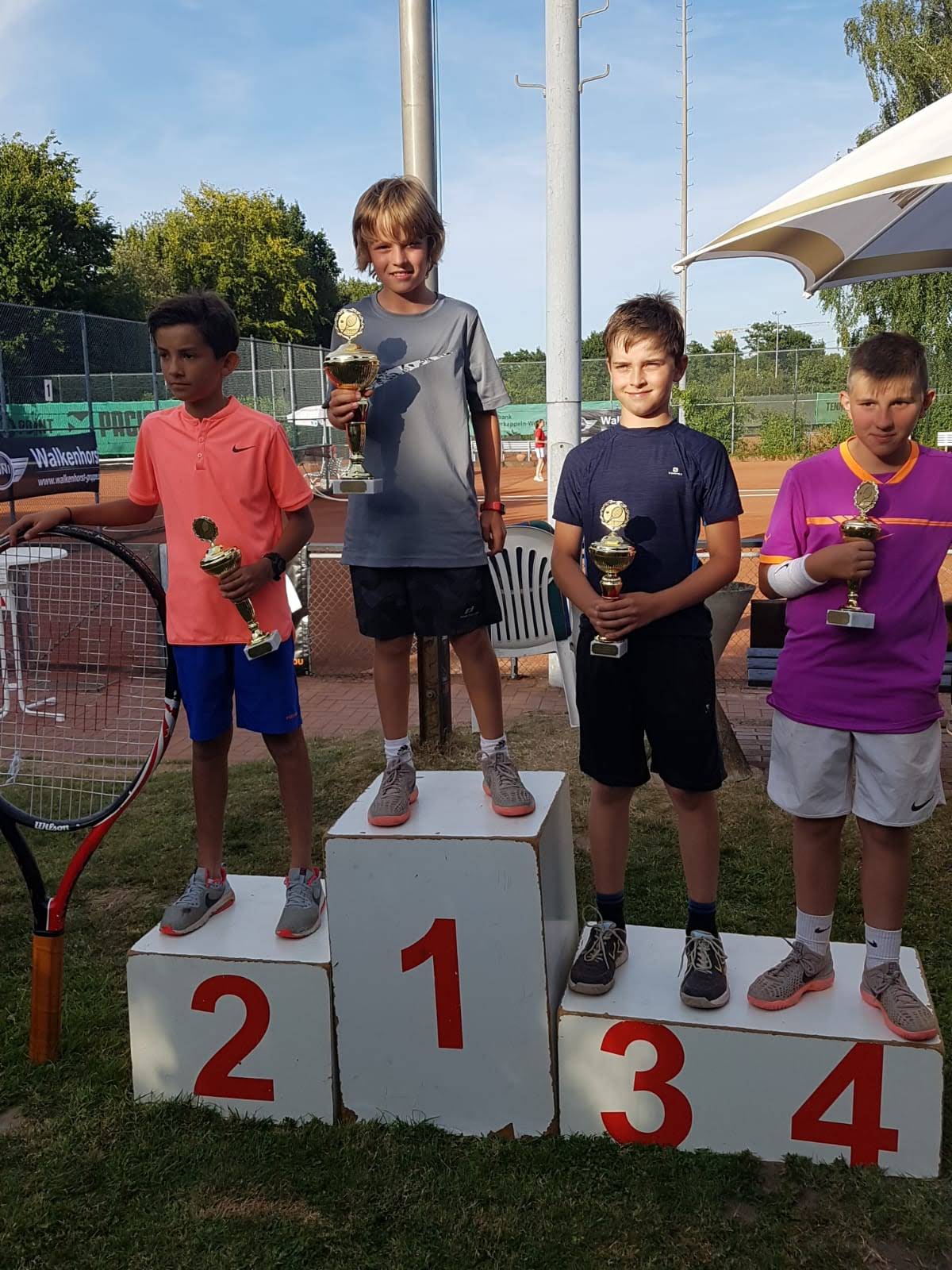 Am Samstag spielte Fynn die von H.-P. Mayer organisierte „Westfalia Tennis Open 2018“ in der Altergruppe U12 in Westerkappeln. Das Turnier zeichnet sich dadurch aus, dass nur ein Satz bis 6 gespielt wird und in den Gruppenspielen bei 5:5 das Spiel endet. Erst ab den K.O. Runden wird beim Stand von 5:5 ein Tiebreak gespielt, der dann über den Sieg entscheidet.