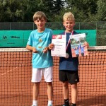 Nachdem sich unsere Youngster bereits fast durch die gesamte U10-Mannschaft von Eintracht Dortmund gespielt hatten, machte Jasper im Finale eine runde Sache draus: Er traf auf Ziyao Sun, ebenfalls Spieler bei Eintracht Dortmund. Nach dem intensiven Halbfinale benötigte unser Juniorenspieler einen kurzen Moment, um den gerne mit extremen Winkeln agierenden Gegenspieler unter Kontrolle zu bringen. Danach war der Turniersieg dann zügig in trockenen Tüchern. Mit einem 6:4, 6:3 baute Jasper seine aktuelle Serie aus – seit nun drei Turnieren in Folge verließ er die Veranstaltung als Gesamtsieger!