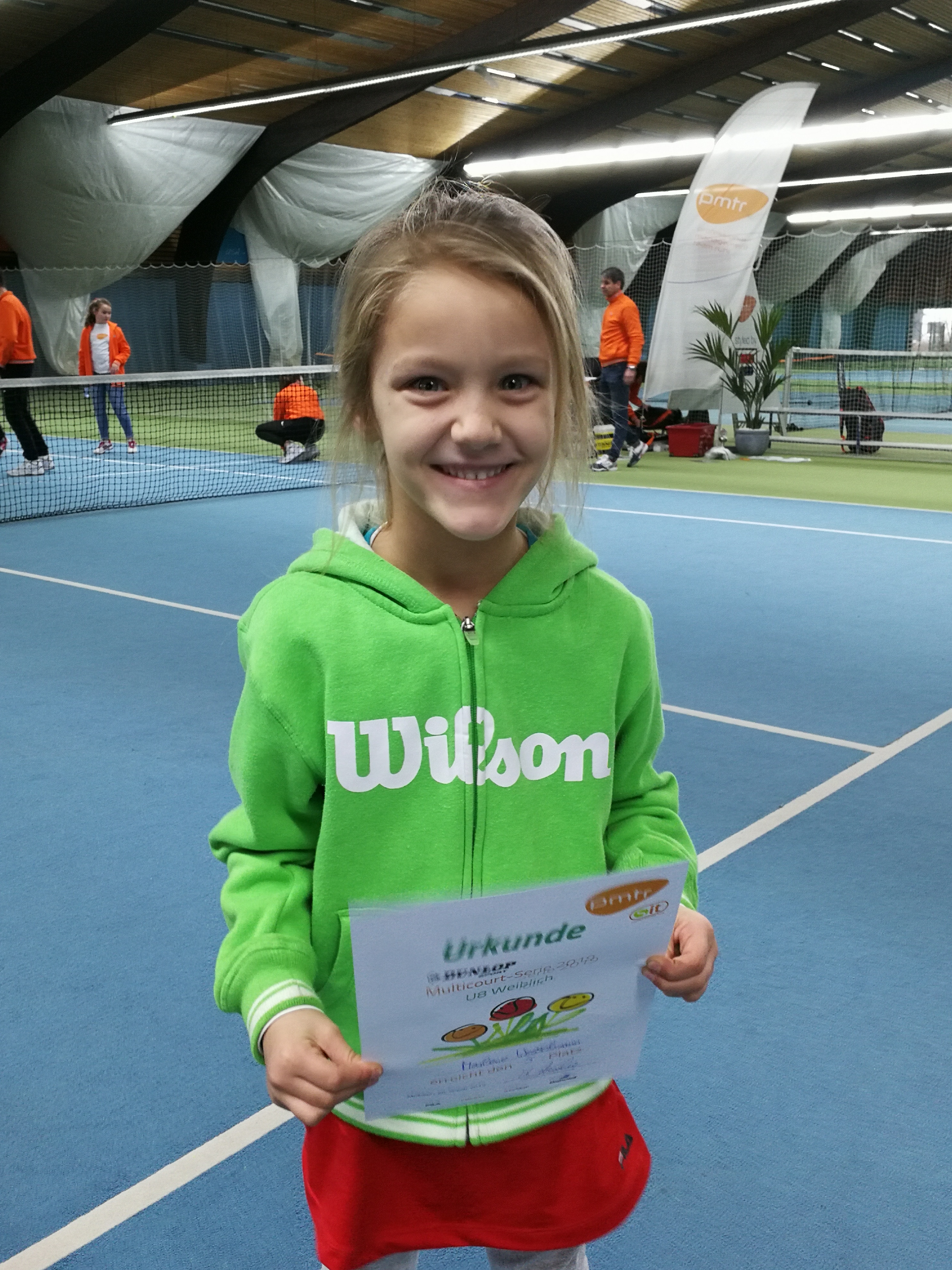 U8-Spielerin Marlene Wesselmann ging beim Kleinfeldturnier im Rahmen der Dunlop Multicourt-Turnierserie des PMTR in Mülheim an der Ruhr an den Start. Dass sie die jüngste Teilnehmerin ist, ist für sie mittlerweile schon Normalität, doch hier war die Holsterhausenerin in der gemischten Konkurrenz eines von nur zwei gemeldeten Mädchen.