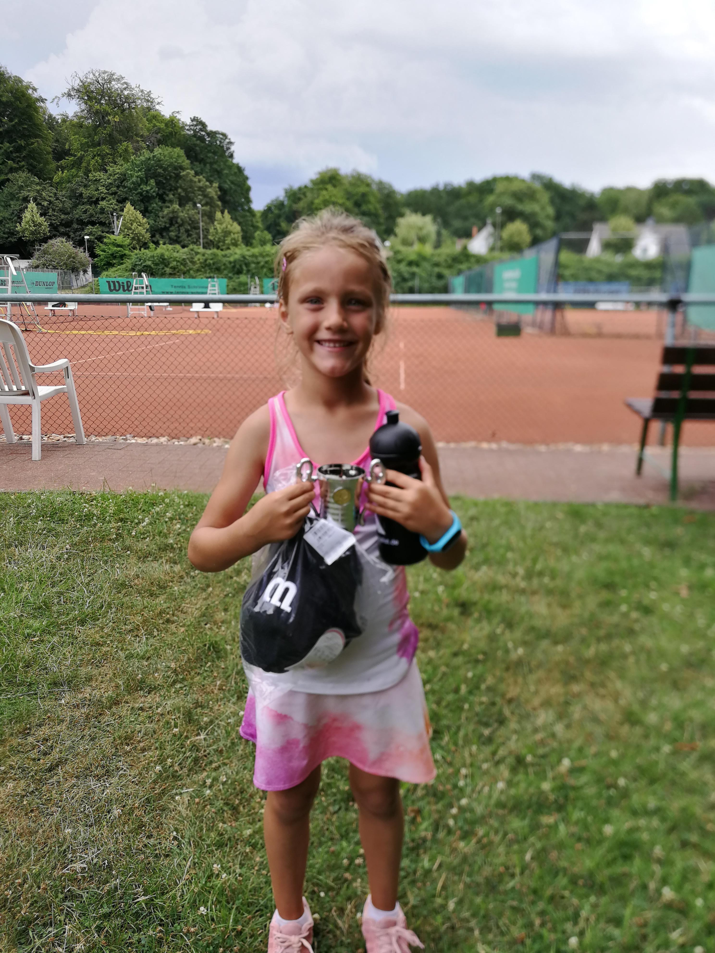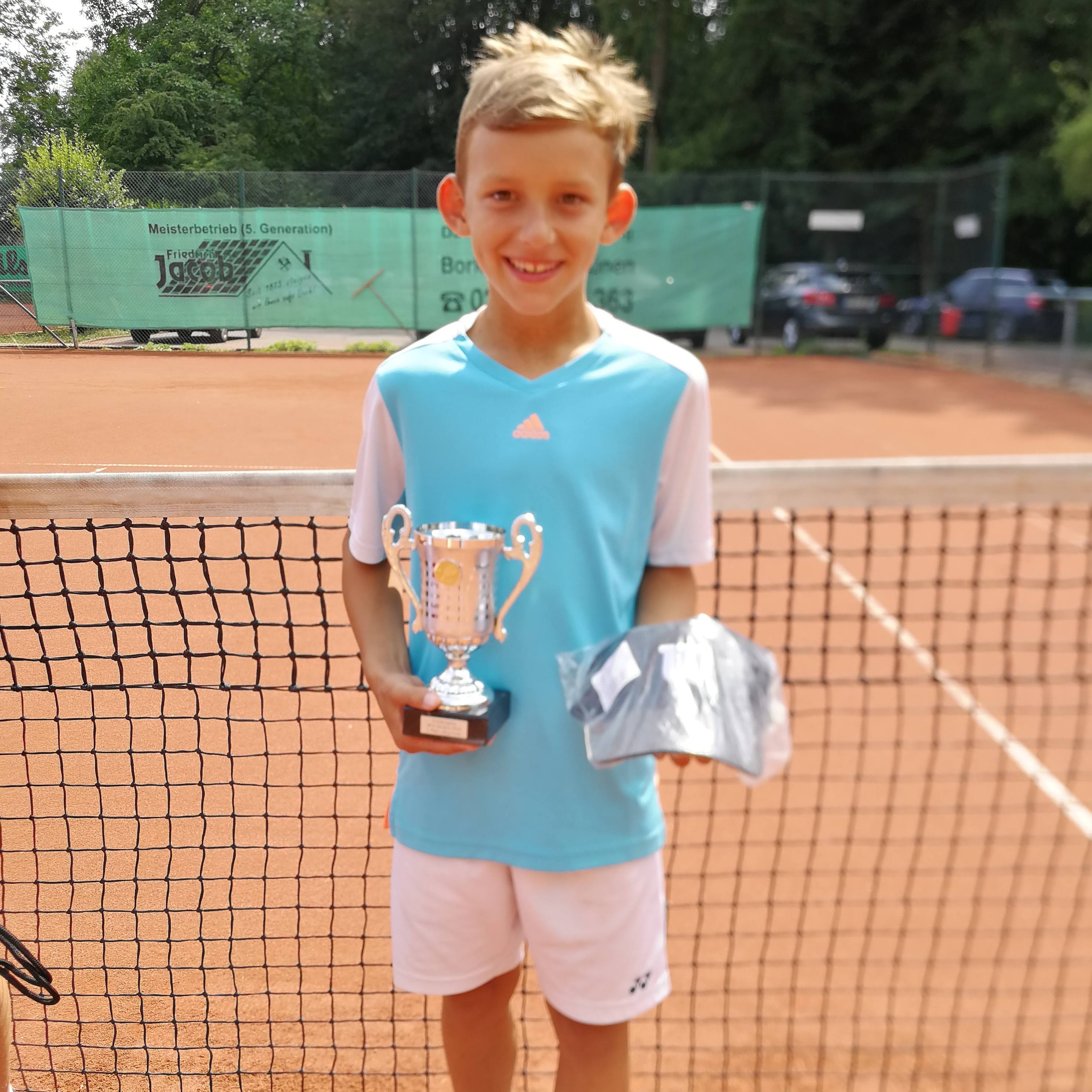 der Vorrunde ging es im Halbfinale erneut gegen Maximilian Tober. Nach gewonnenem ersten Satz hatte unsere U8-Spielerin im zweiten Satz einen Matchball, den sie leider nicht verwerten konnte. In der Folge musste sie leider erneut den Dortmunder ins Finale weiterziehen lassen. Im Spiel um Platz drei siegte unser Tennisküken dann souverän und nahm erneut die Preise für den dritten Platz mit nach Dorsten.