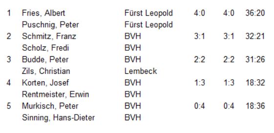 | Cremer / Sutmann | – Brummer / Olbrich | 9:1 |