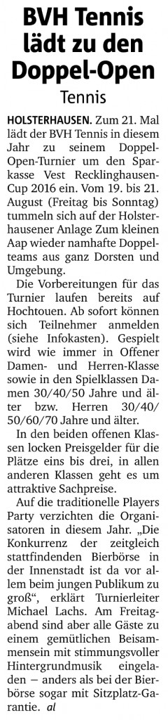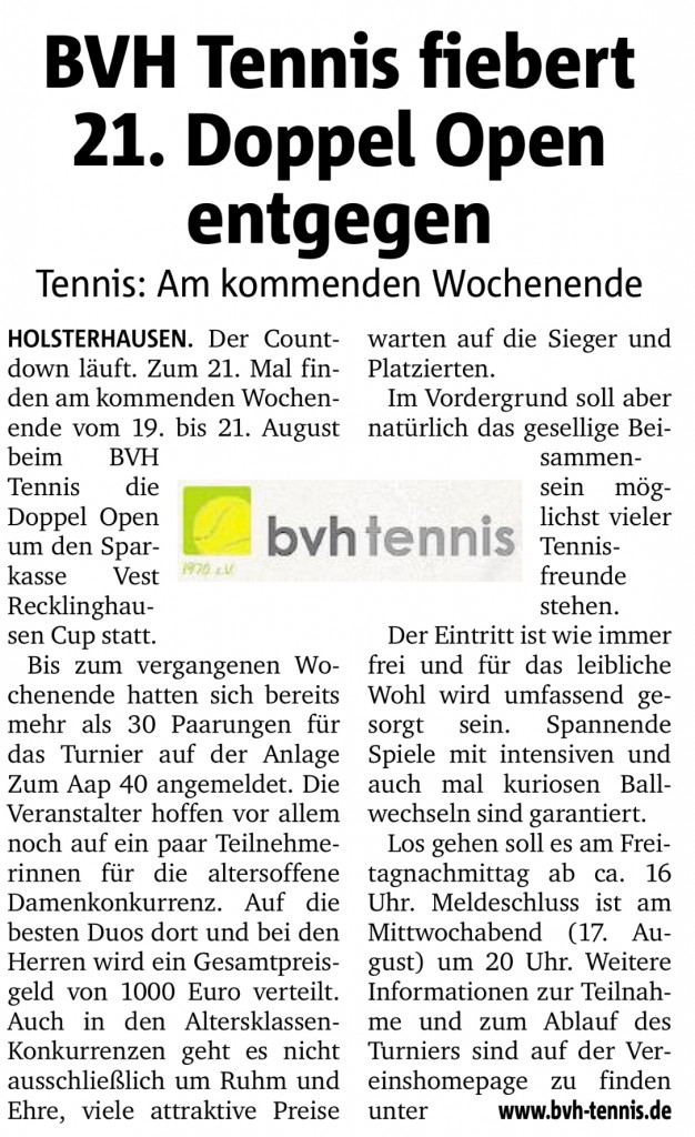 Vom 19. bis zum 21. August fanden unsere traditionsreichen BVH Doppel Open zum 21. Mal statt.