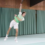 In der zweiten Einzelrunde waren Fabi (1) und Basti (4) gefordert. Obwohl er sein bestes Spiel seit langem machte, konnte Basti die Partie nur im ersten Satz offen gestalten, der aber schließlich mit 4:6 verloren ging. Von einer Sehnenscheidenentzündung gehandicapt konnte er leider im zweiten Durchgang keine Wende mehr einleiten und musste sich mit einem 2:6 geschlagen geben. Fabi hatte es mal wieder mit einem LK1-Spieler zu tun. Dementsprechend waren die Aussichten alles andere als rosig. Er wehrte sich jedoch tapfer und hätte sich ein bisschen mehr als den einen am Ende zu Buche stehenden Spielgewinn durchaus verdient.