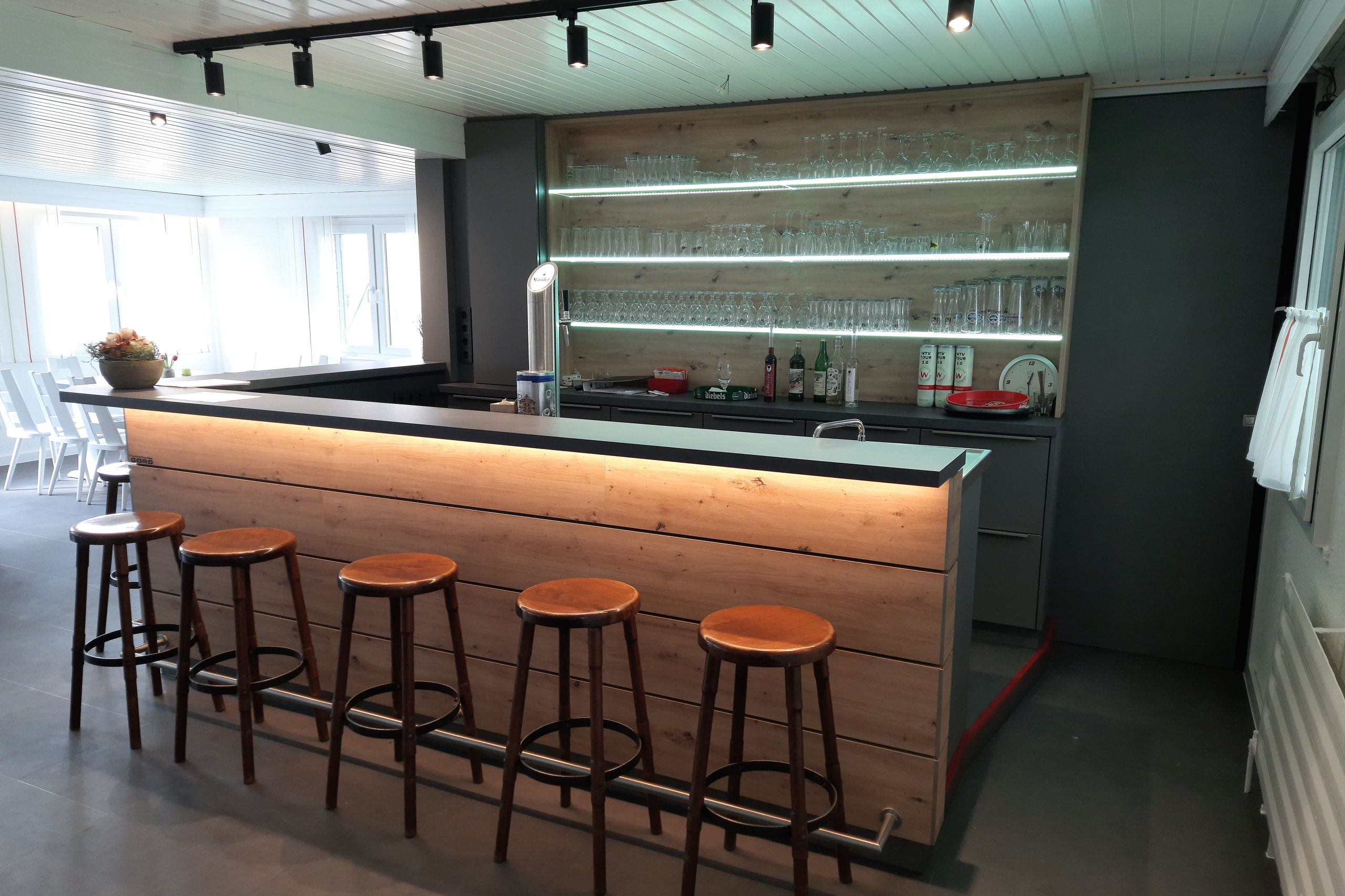 • eine Baranlage mit Zapfmöglichkeit und Kühlschränken